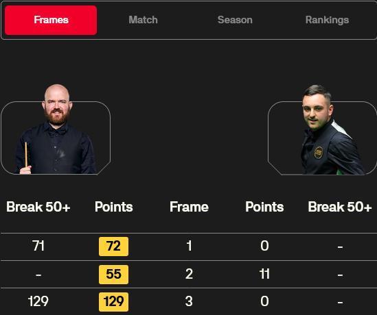 第三比赛日共打出2杆破百免费比赛录像,罗比-威廉姆斯在对阵海顿-平海的第三局中,打出单杆129分确当日单杆最高分,亦然本届赛事到当今为止的单杆最高分。埃里奥特-斯莱塞对阵穆斯塔法-多尔格姆的第三局中,打出单杆106分。